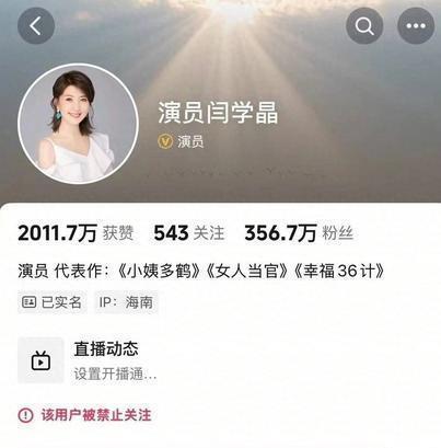 原本闫学晶可能没在意,但官媒介入之后,她的社交账户也被封禁关注,这才意识到事情的严重程度。