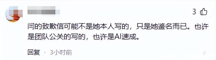 有人觉得“她不是懂得错了,而是知道怕了”,还有人怀疑这份道歉信是不是由公关团队写的,或者是用AI生成的。